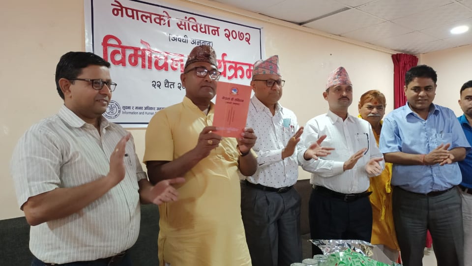 अनुवादित अवधी संविधानको मंगलबार नेपालगन्जमा एक समारोहका विच गाउँपालिका अध्यक्ष नरेन्द्रकुमार चौधरीले विमोचन गर्दै अनुवादित संविधानलाई सबैले पढेर आफ्नो ज्ञान र व्यवहारमा कार्यन्वयन हुने बताउनुभयो । अध्यक्ष चौधरीले भन्नुभयो –‘संविधानका मौलिक हक अन्र्तगत प्रयोग गरिने विभिन्न अधिकार माग्दा पहिला कर्तत्व्यको पालना गर्नुहोस, अनि मात्र संविधानले सार्थकता पाउने छ, ।’ उहाँले यो संविधानले सबैले संस्कार सिक्नुपर्नेमा जोड दिदै कानूनका बारेमा आफुलाई थाहा भएपछि थुप्रै अधिकारका बारेमा वकालत गर्न सहज हुने बताउनुभयो ।