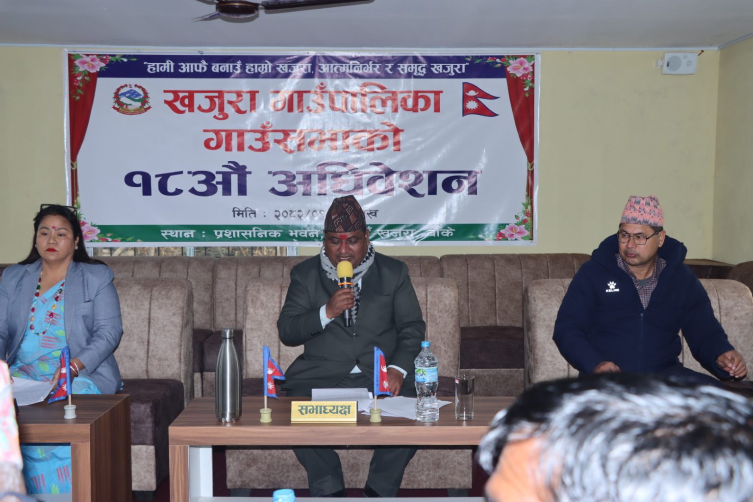 (नेपालगंन्ज ) बाकेको खजुरा गाउपालिकाले पहिलो पटक आफनै प्रशासनिक भवनबाट गाउपालिकाको १८औ गाउँसभा अधिवेशन भब्यरुपमा सम्पन्न गरेको छ। पौष २१ गते सोमबार सम्पन्न अधिवेशनलाई खजुरा गाउपालिकाको संस्थागत सुदृढीकरण र आत्मनिर्भर प्रशासनिक अभ्यासको ऐतिहासिक उपलब्धिका रूपमा हेरिएको छ। अधिवेशनमा सभा सदस्यहरुले स्थानीय सरकारले लगानी गरेका कामहरुमा उपलब्धी खोज्नुपर्ने...